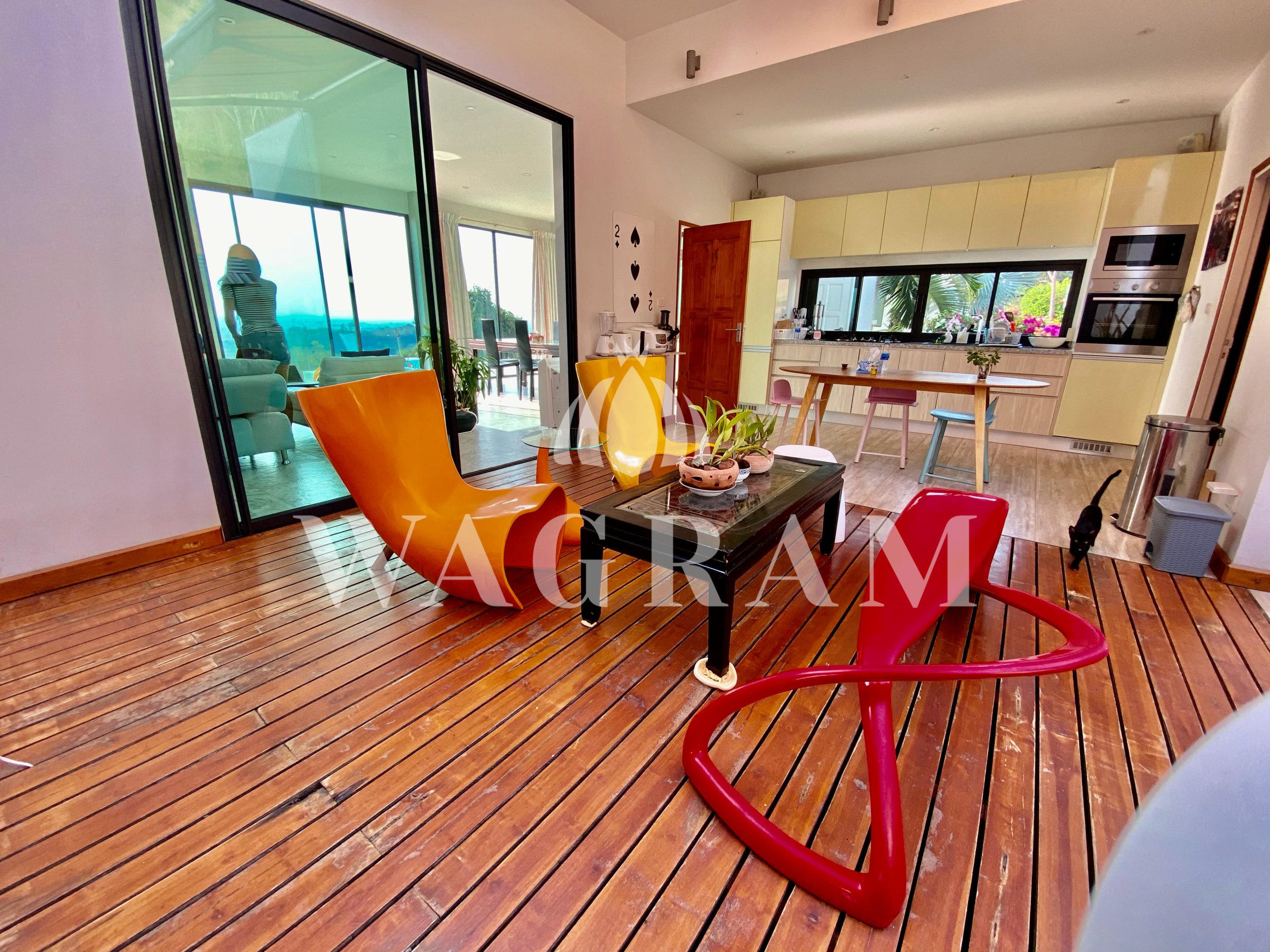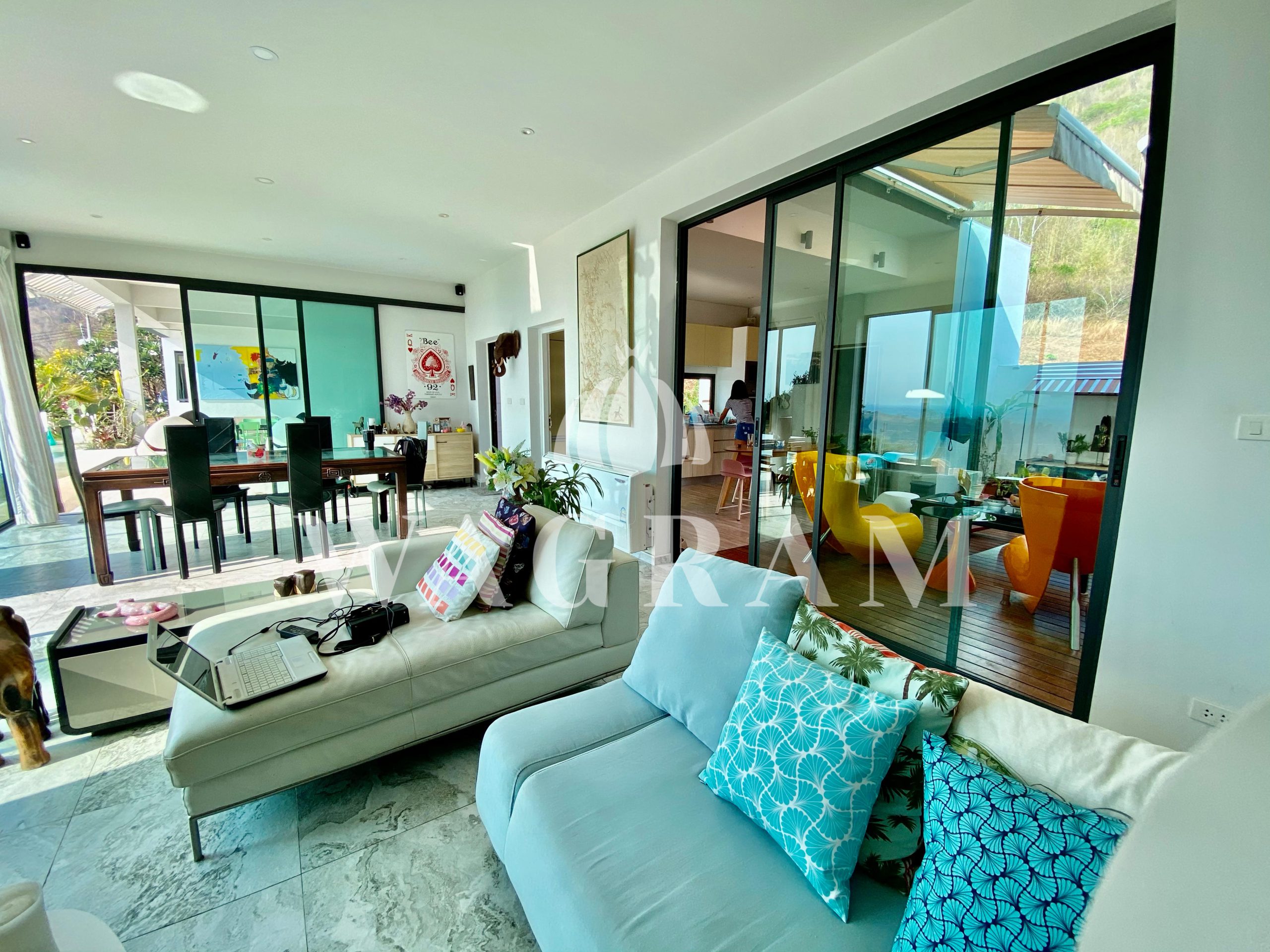 Then moving forward you will see a large open terrace with sitting area and an unique beach simulation swimming pool, large glass sliding door in living /dinning room, showing a panoramic view wherever you are.