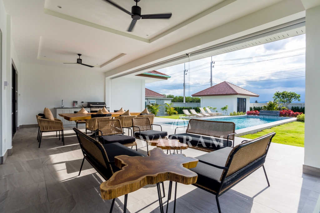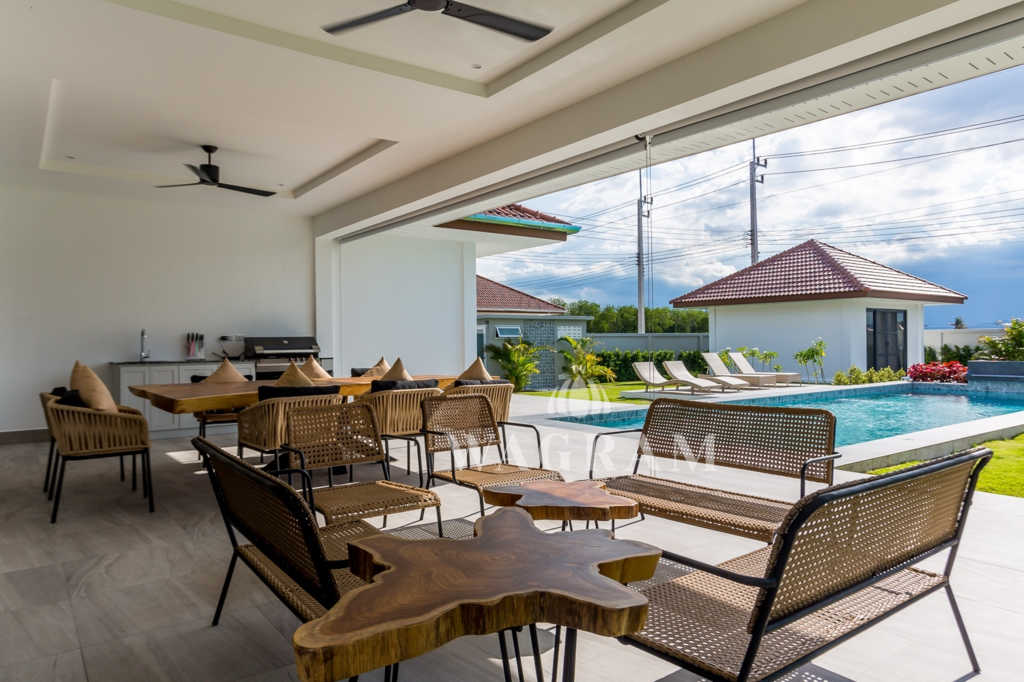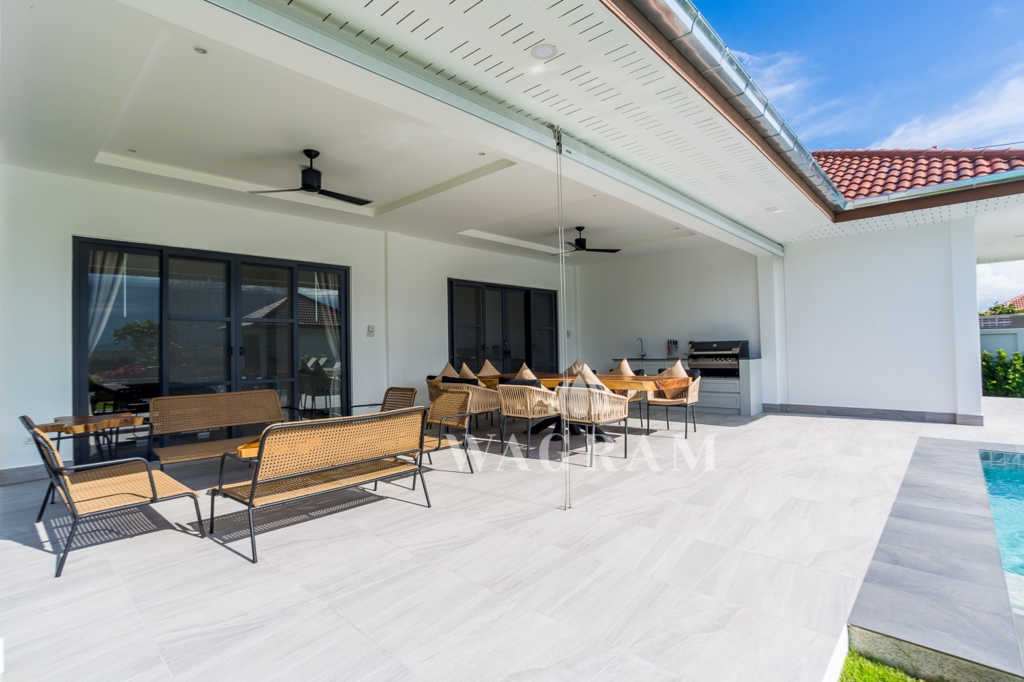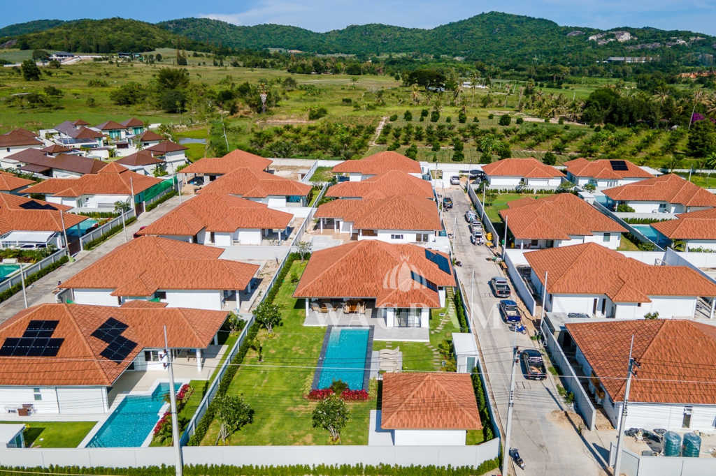 The housing project offers 24h security, a large communal pool, gym and shuttle bus service to and from Hua Hin centre which is 10 mins away.
