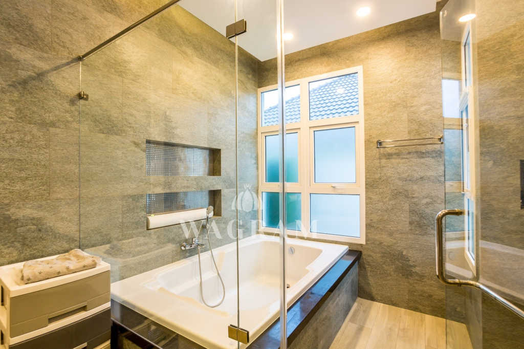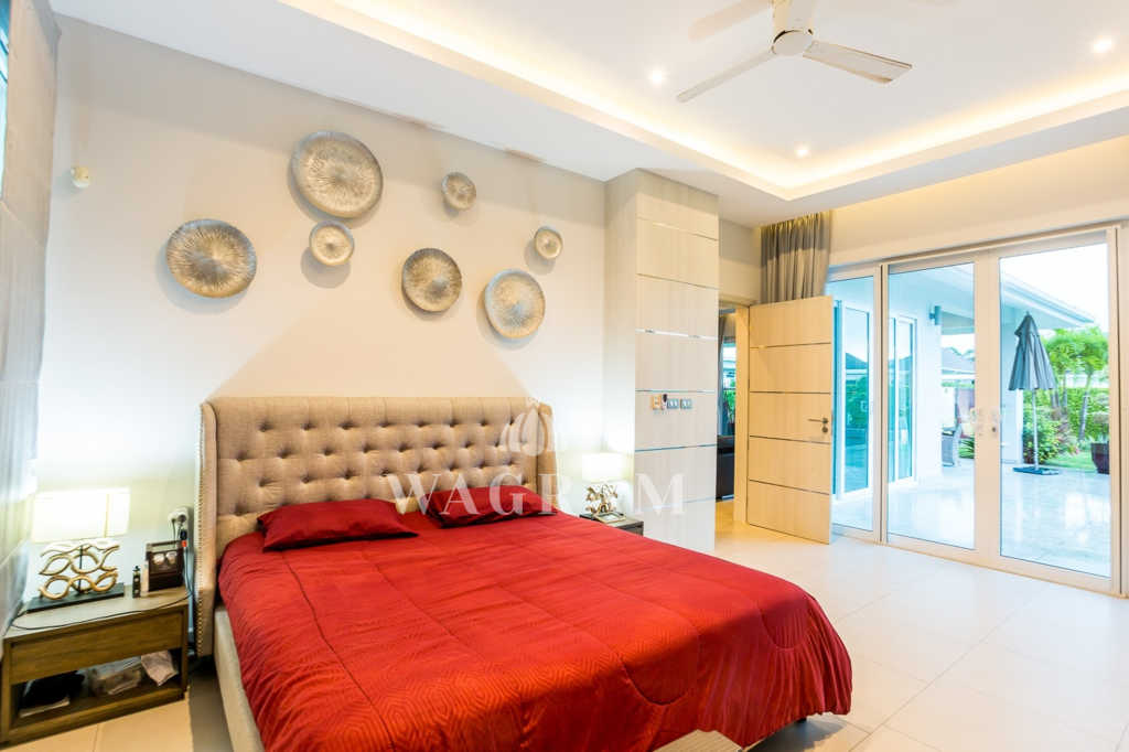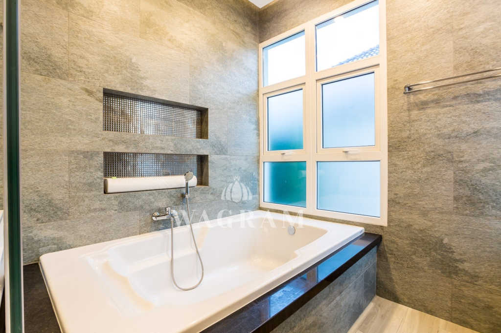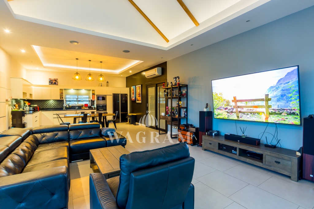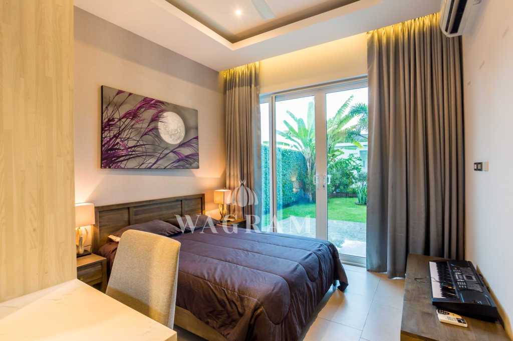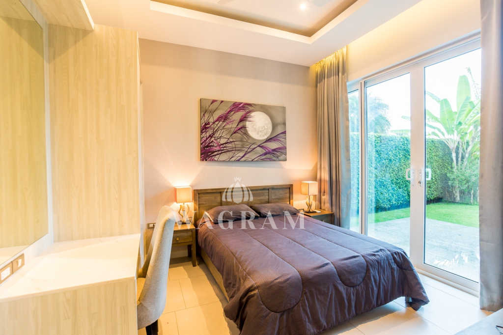 Deluxe Villa at Baan Phutara is a three bedroom design with all bedrooms having en-suite facilities, this villa has a living area of 183 Sqm. The master and first guest bedroom enjoys access to the terrace and a 10m x 4m swimming pool. The main area of the house, which includes the Kitchen, Dining and Living room, is open plan.