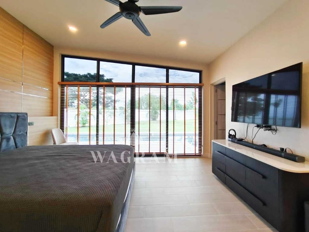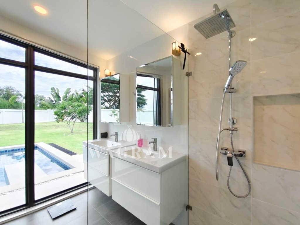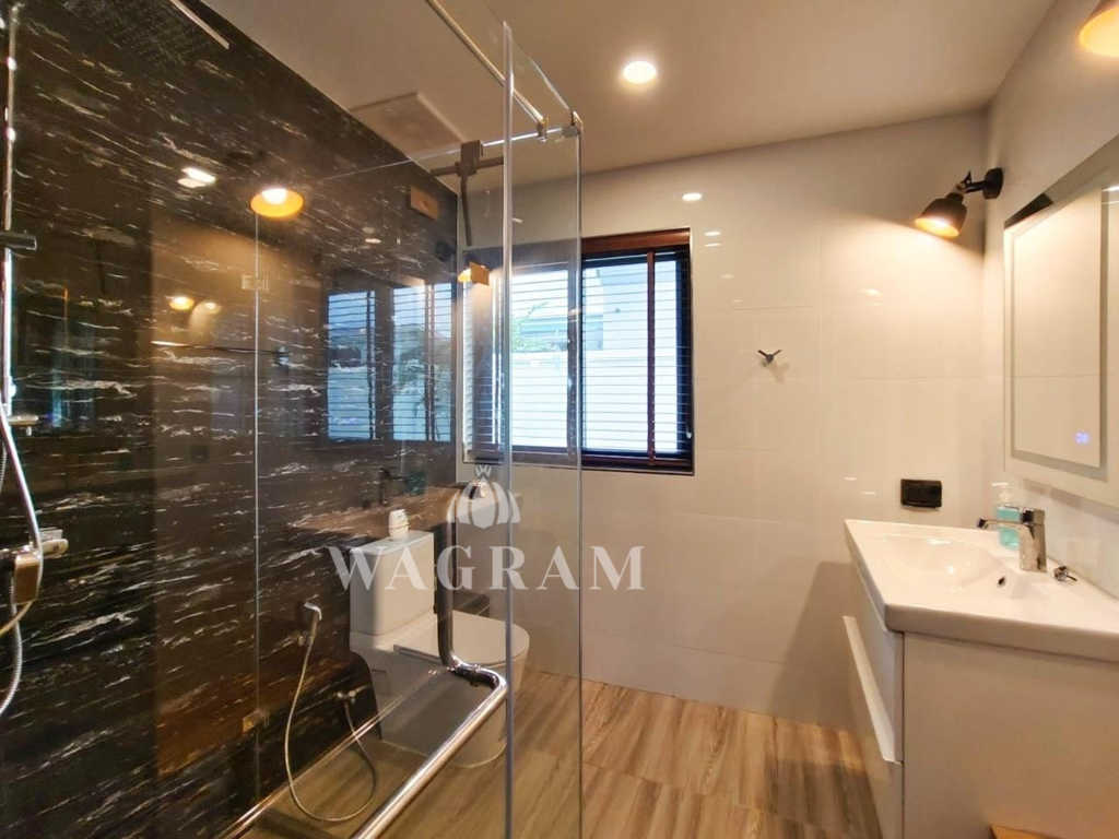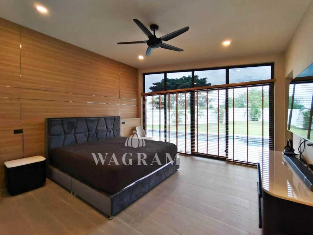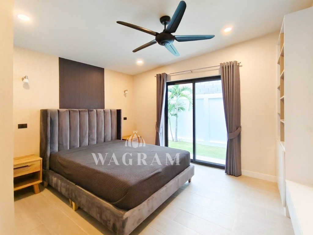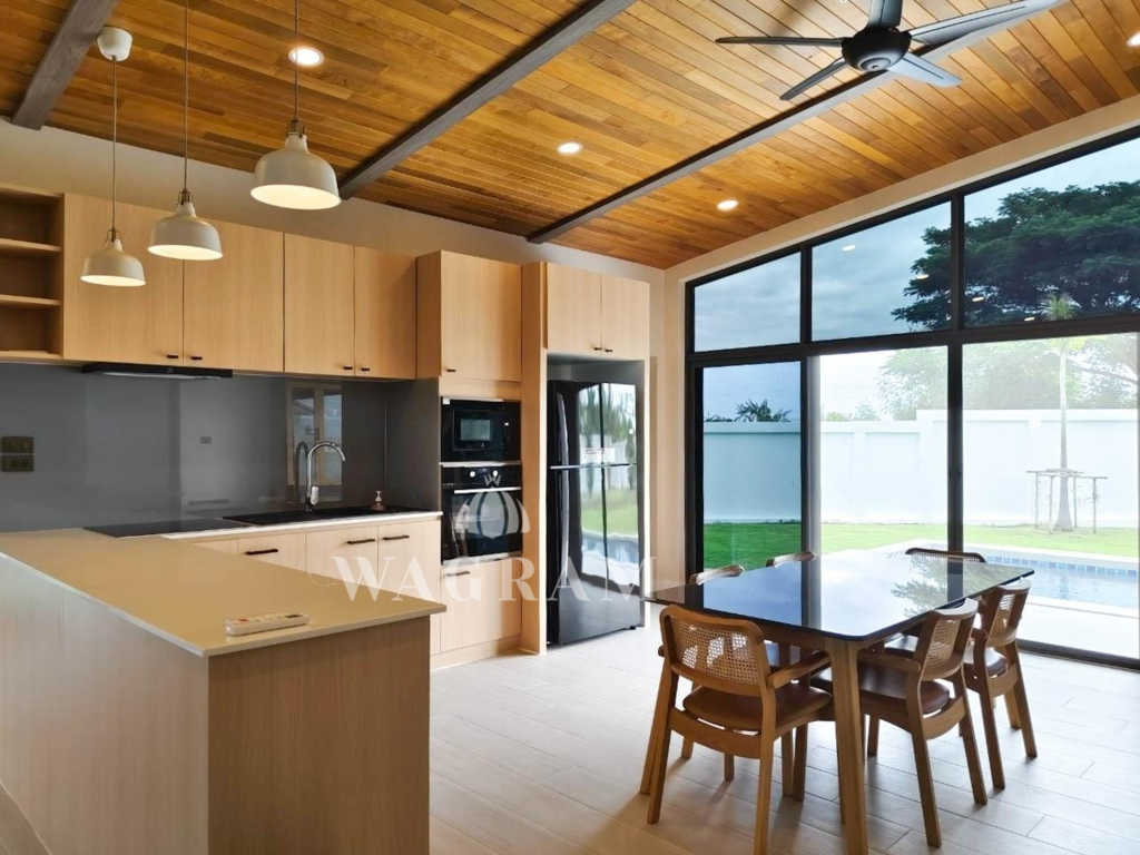 Nestled within a small and exclusive residential enclave off Soi 112, in close proximity to the picturesque Pineapple Valley Golf Course, awaits a contemporary luxury estate – a 3-bedroom, 2.5-bathroom villa exuding modern elegance and luxurious comfort on large plot of land. Newly completed in 2022, this villa has been meticulously upgraded by the current owner, boasting exquisite textures, including a stunning wood ceiling in the entrance and living room, and an expanded terrace/pool area, among other enhancements.