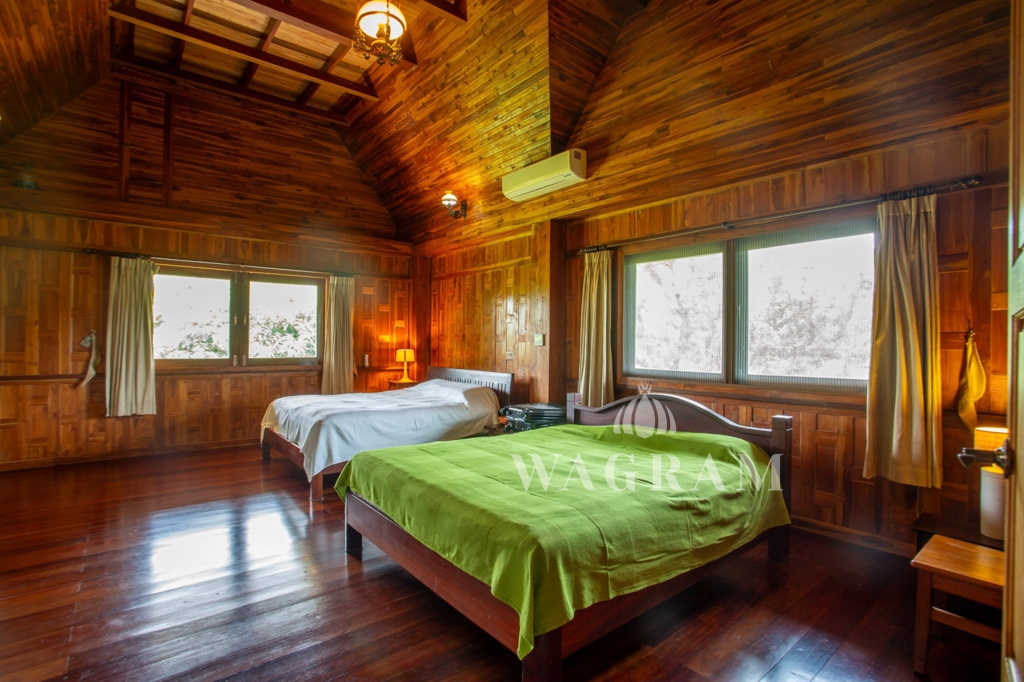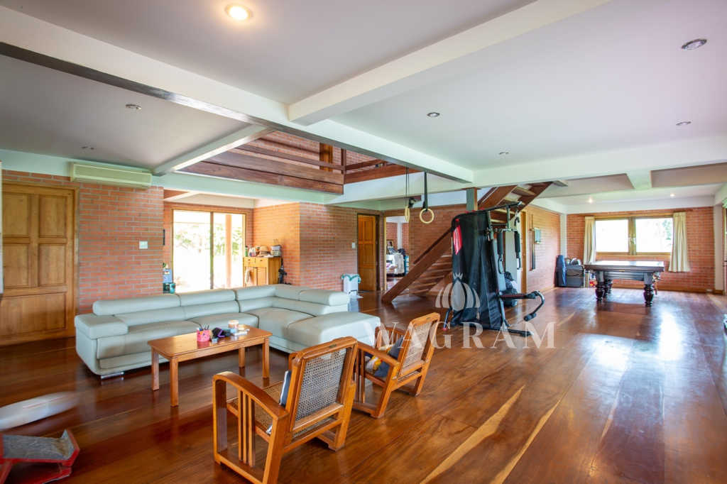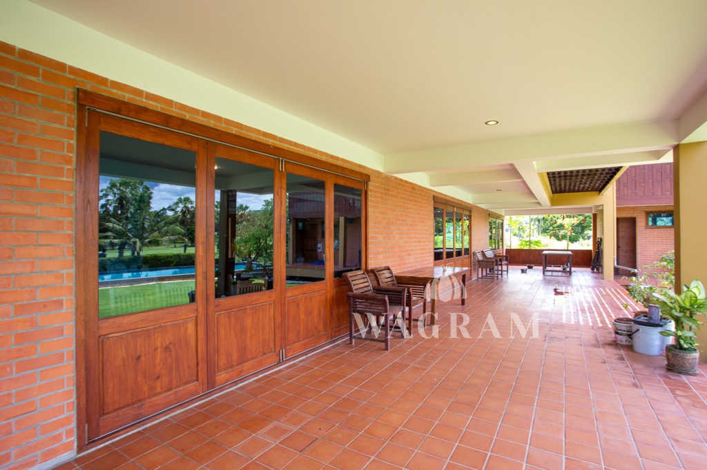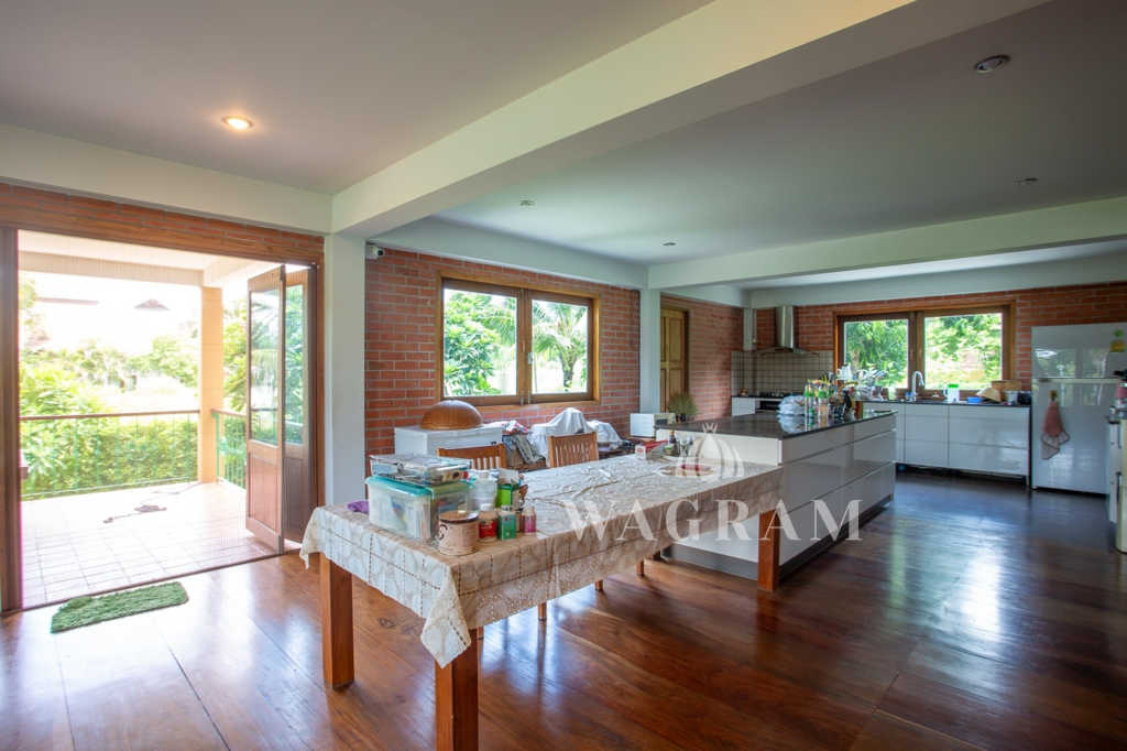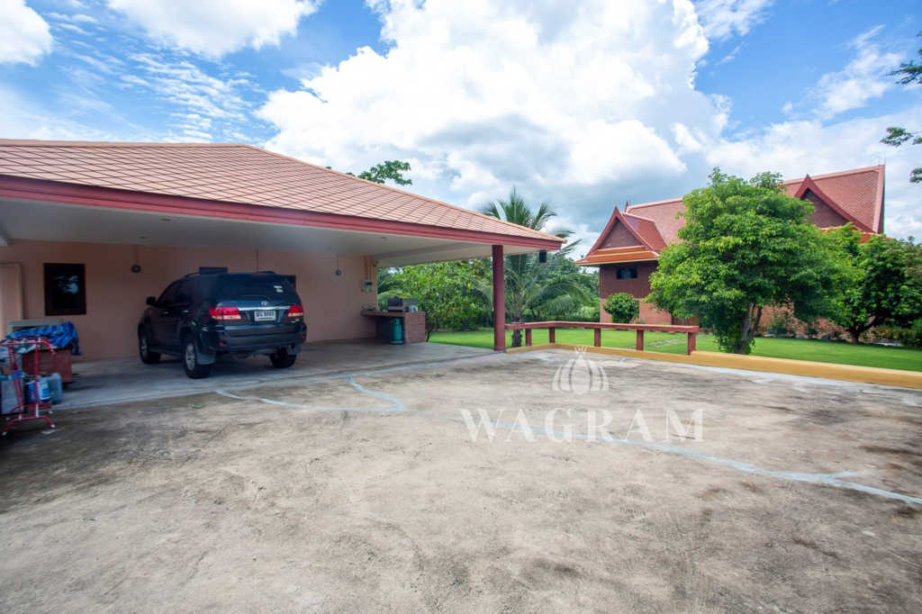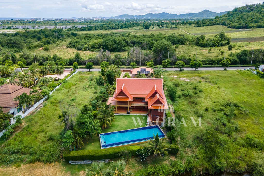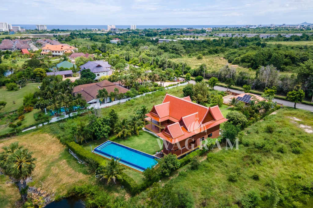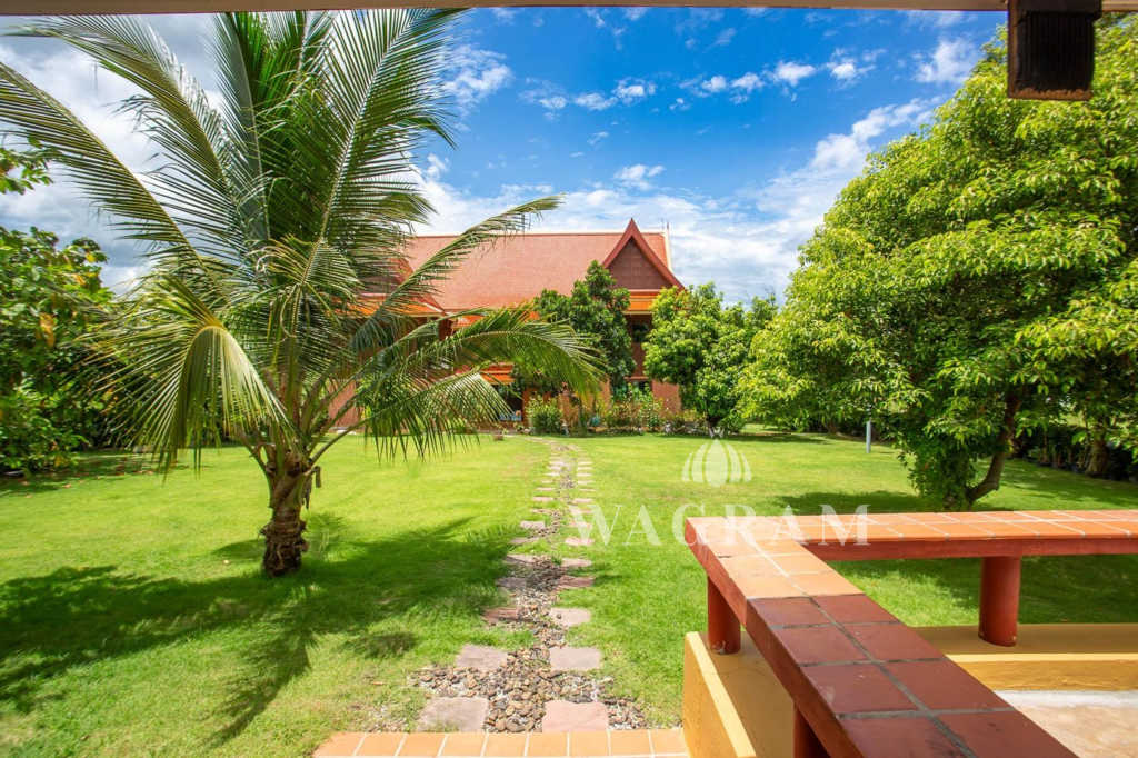 This stunning two-story Ayutthaya-style Thai house, built entirely from teak and hardwood, offers exceptional durability and charm. Nestled within a renowned, quiet, and peaceful golf course, the property spans 1.5 rai (2,400 square meters) with breathtaking views of a nearby lake and surrounding mountains. This serene retreat features 4 spacious bedrooms, 4 bathrooms, a dedicated office, and 2 storage rooms, providing a perfect blend of traditional elegance and modern comfort in a tranquil, picturesque setting.