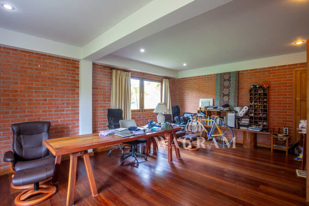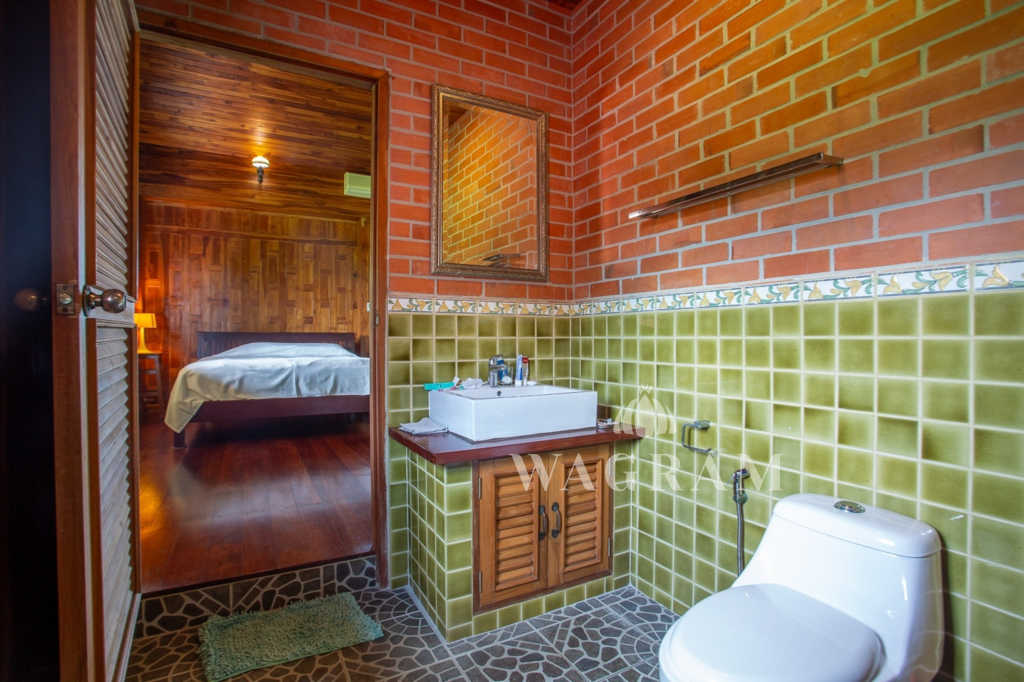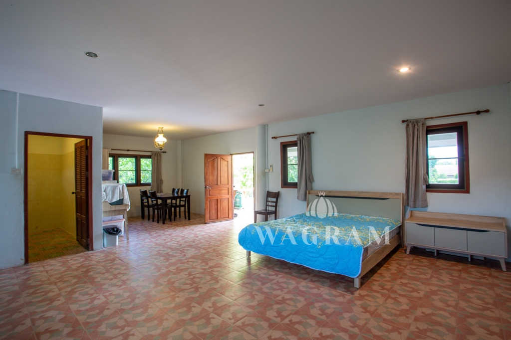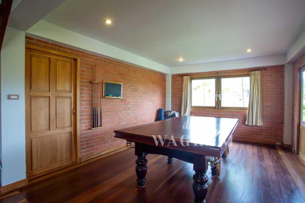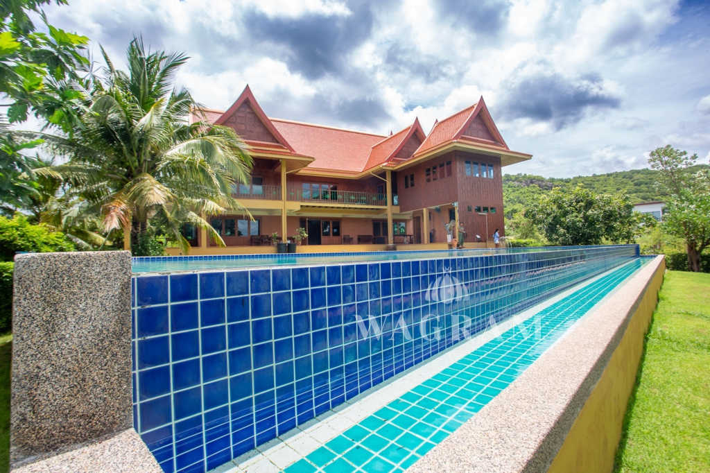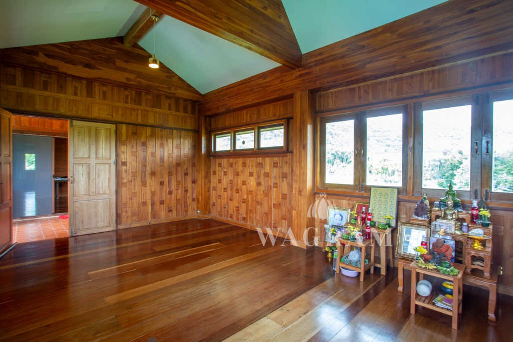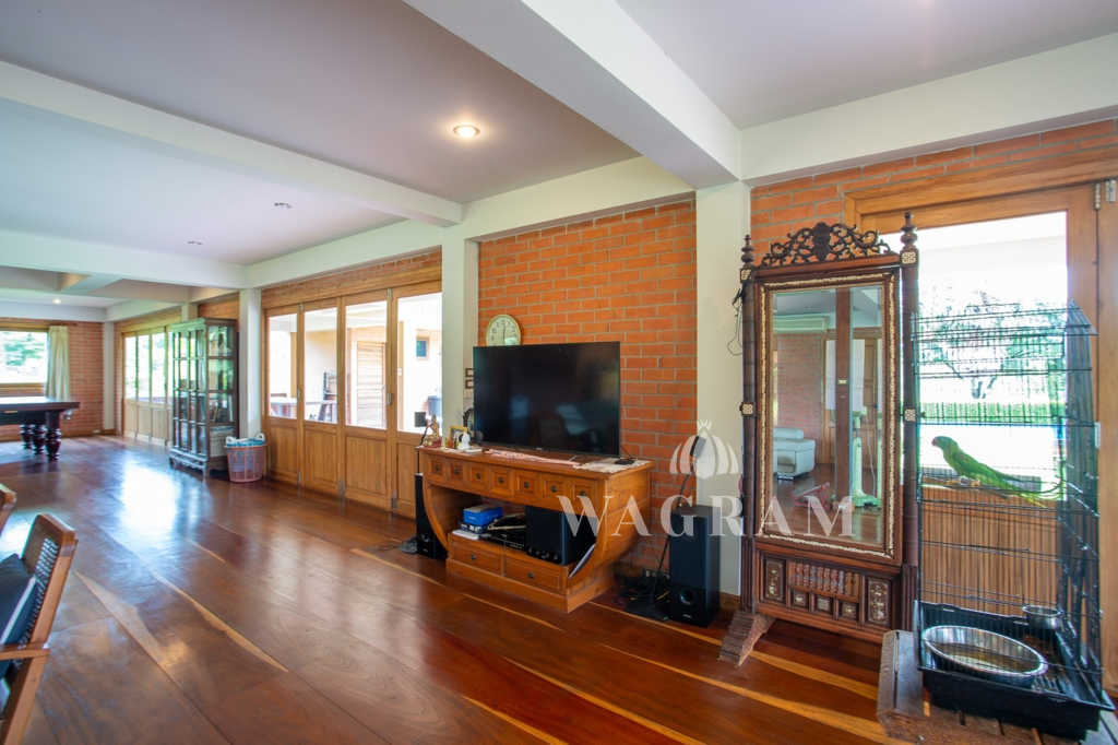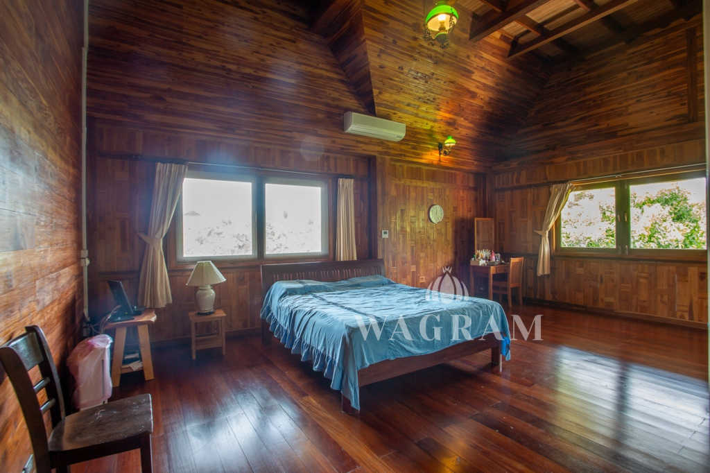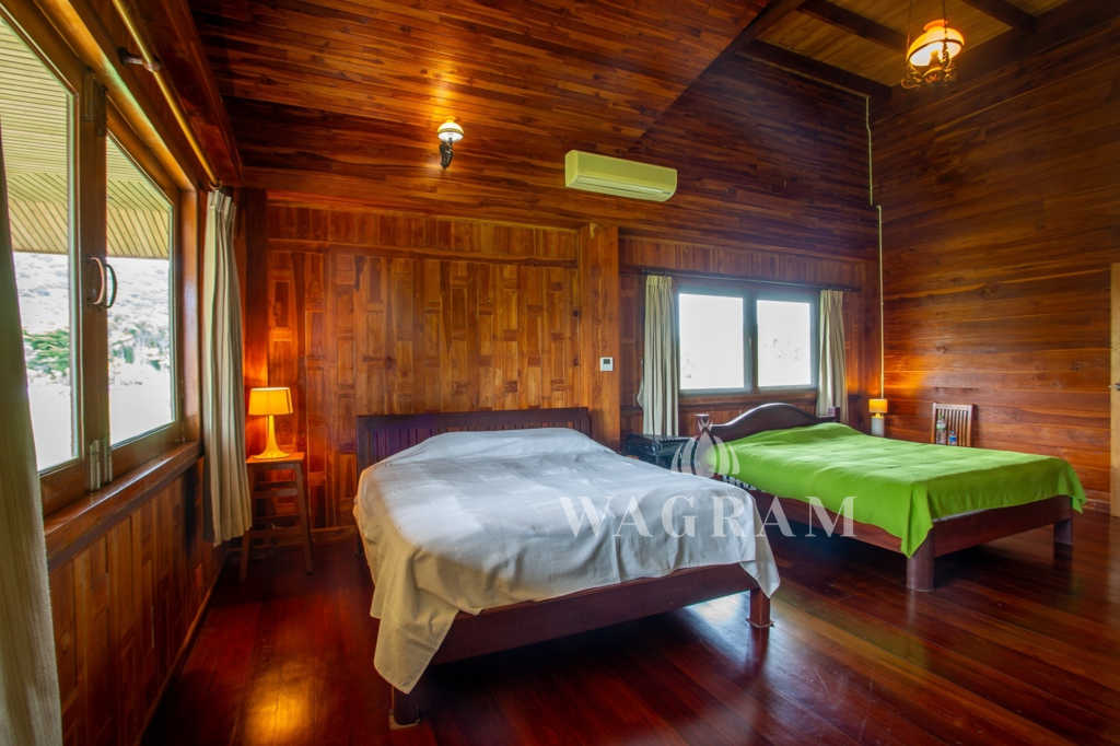 This stunning two-story Ayutthaya-style Thai house, built entirely from teak and hardwood, offers exceptional durability and charm. Nestled within a renowned, quiet, and peaceful golf course, the property spans 1.5 rai (2,400 square meters) with breathtaking views of a nearby lake and surrounding mountains. This serene retreat features 4 spacious bedrooms, 4 bathrooms, a dedicated office, and 2 storage rooms, providing a perfect blend of traditional elegance and modern comfort in a tranquil, picturesque setting.