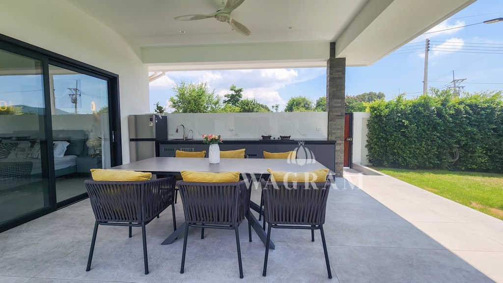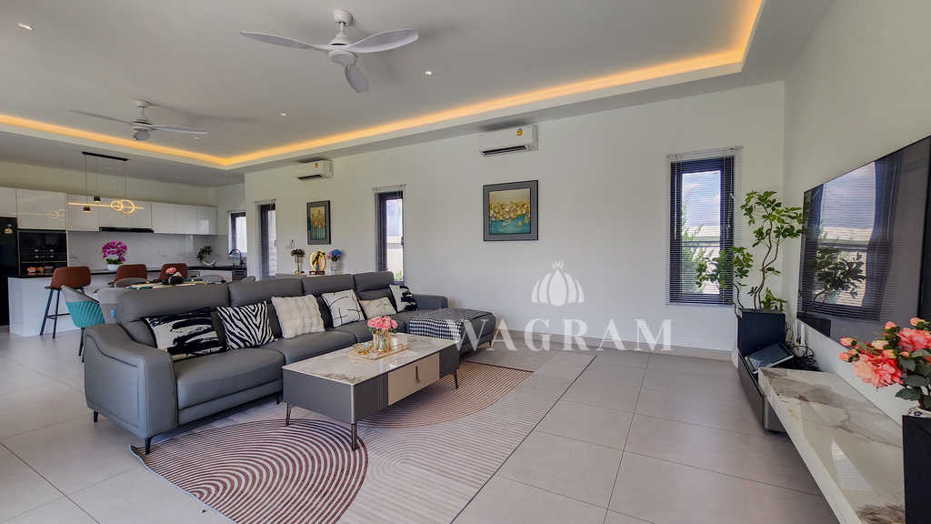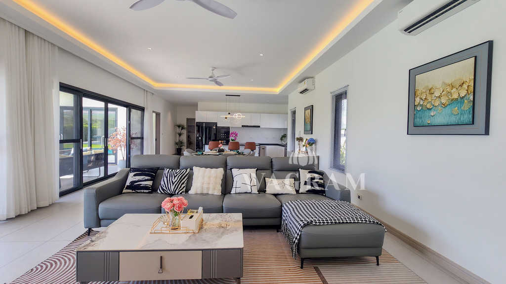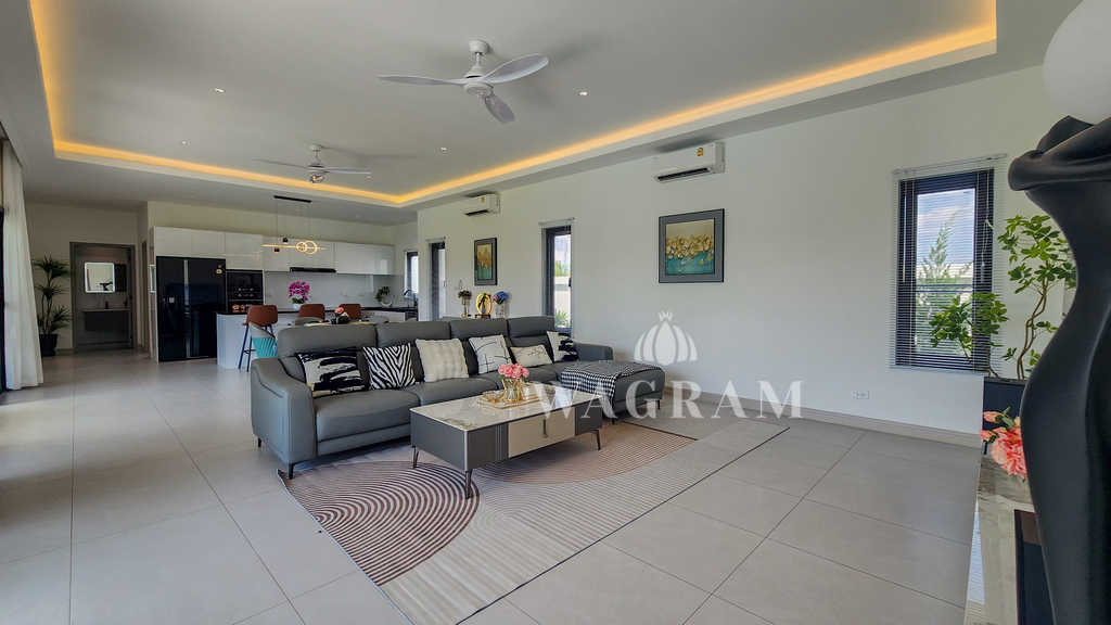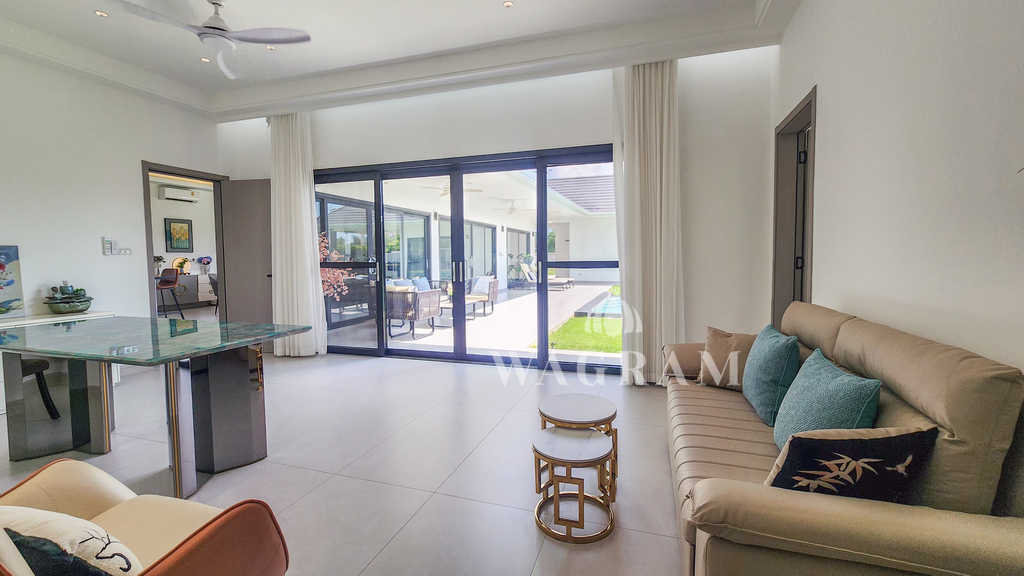 A rare opportunity to own a private modern pool villa located just minutes from the prestigious Black Mountain Golf Course, nestled in a scenic, peaceful setting just outside Hua Hin city center.