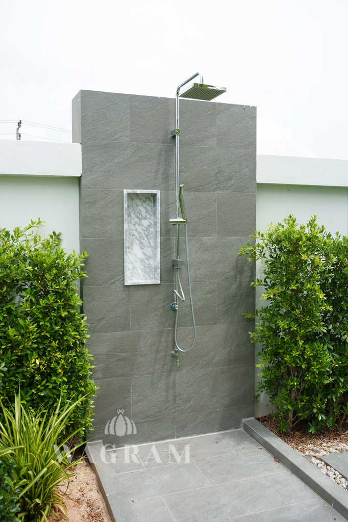 There are 2 master en-suite bedrooms with one guest room with a bathroom with a total of 407 sqm built-up area in 530-620 of the land lot.